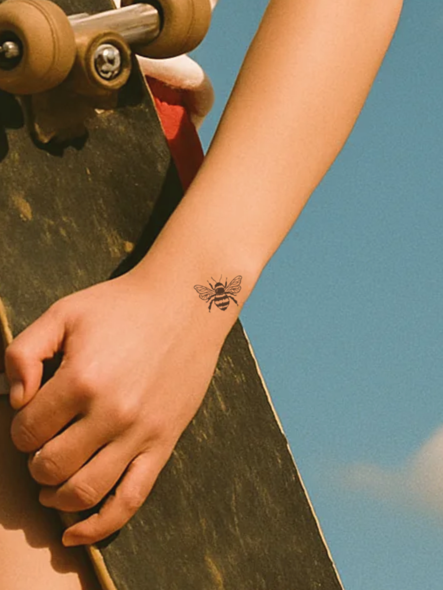 Charming Bee tattoo symbolizes diligence and sweet positivity, adding joy to your style. Quick delivery and free shipping options!